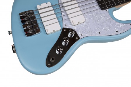 - Z-Krome finish is blue tint front and back, with metallic silver body core color. Neck fingerboard is stained to match body.