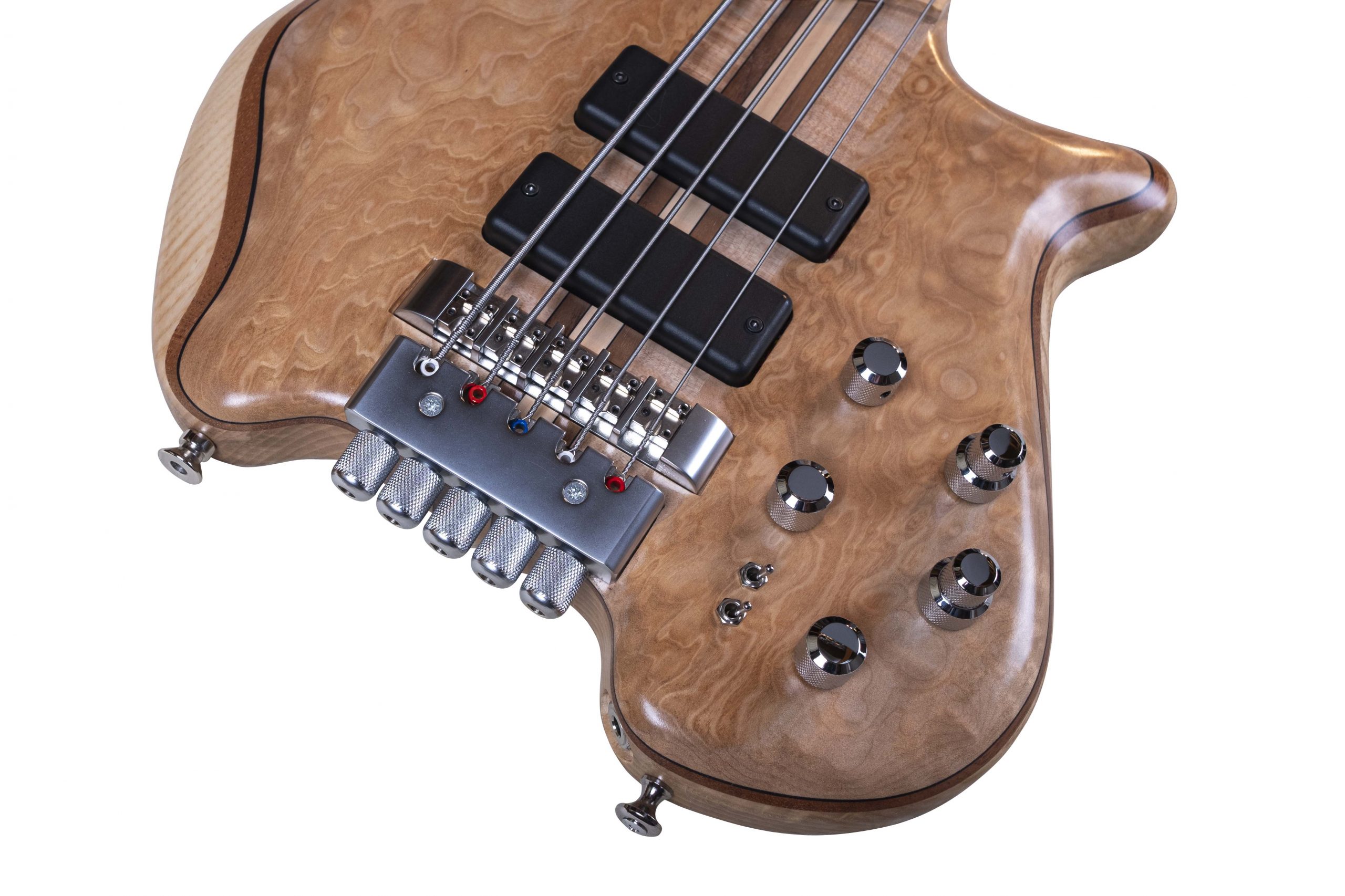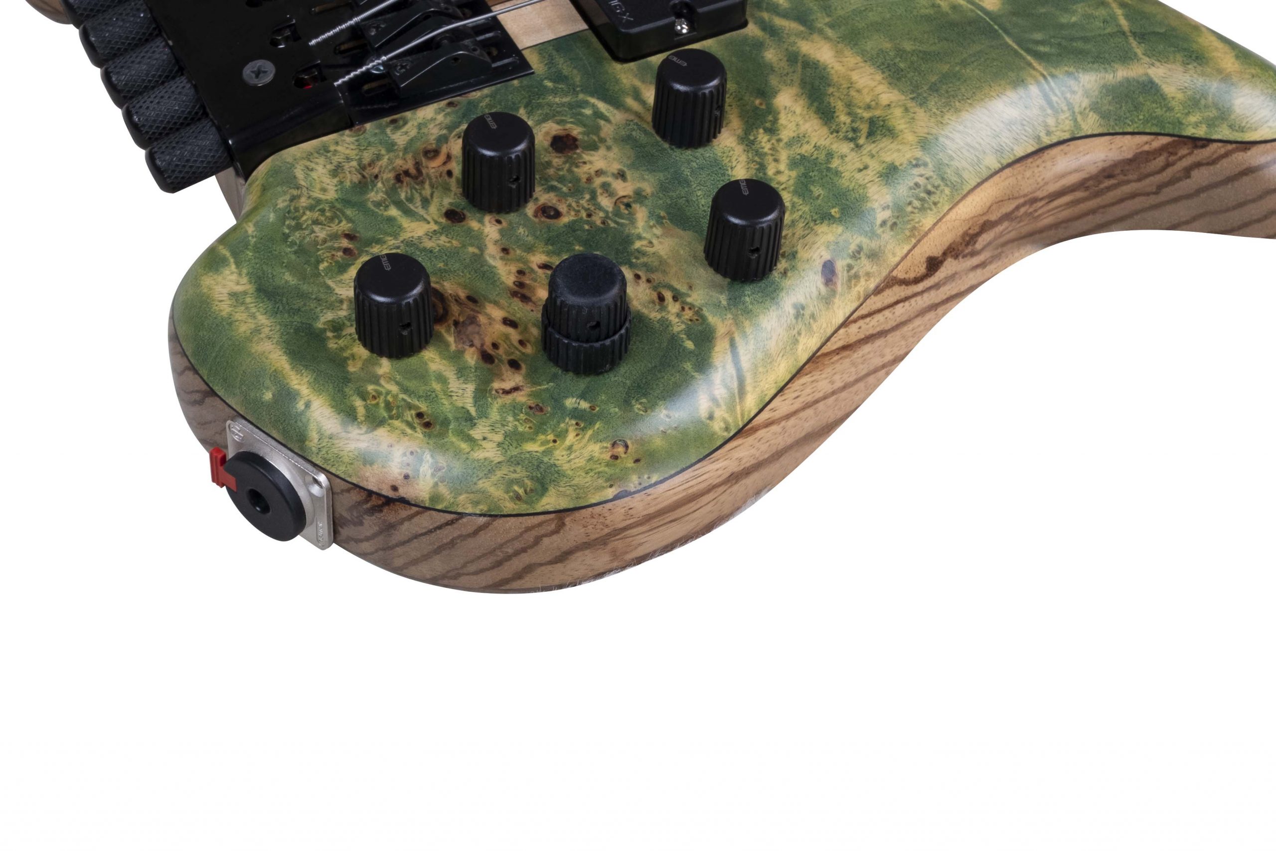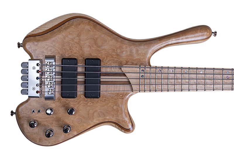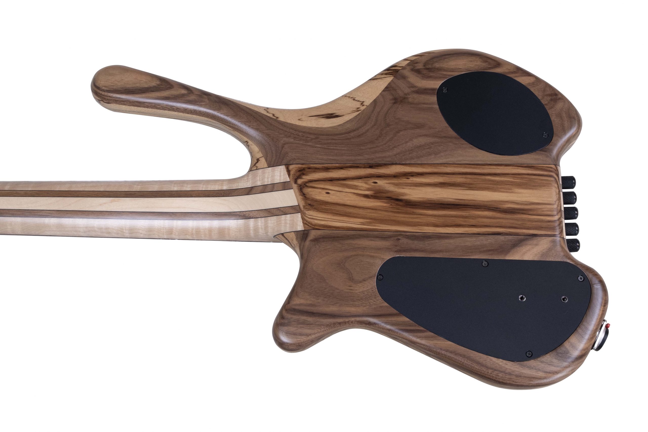 The focus of the Zentro design was comfort, balance, ergonomics and playability. The unique design offers unimpeded access to all frets. Exotic woods and active electronics are standard. Available as bolt-on or through-neck construction.