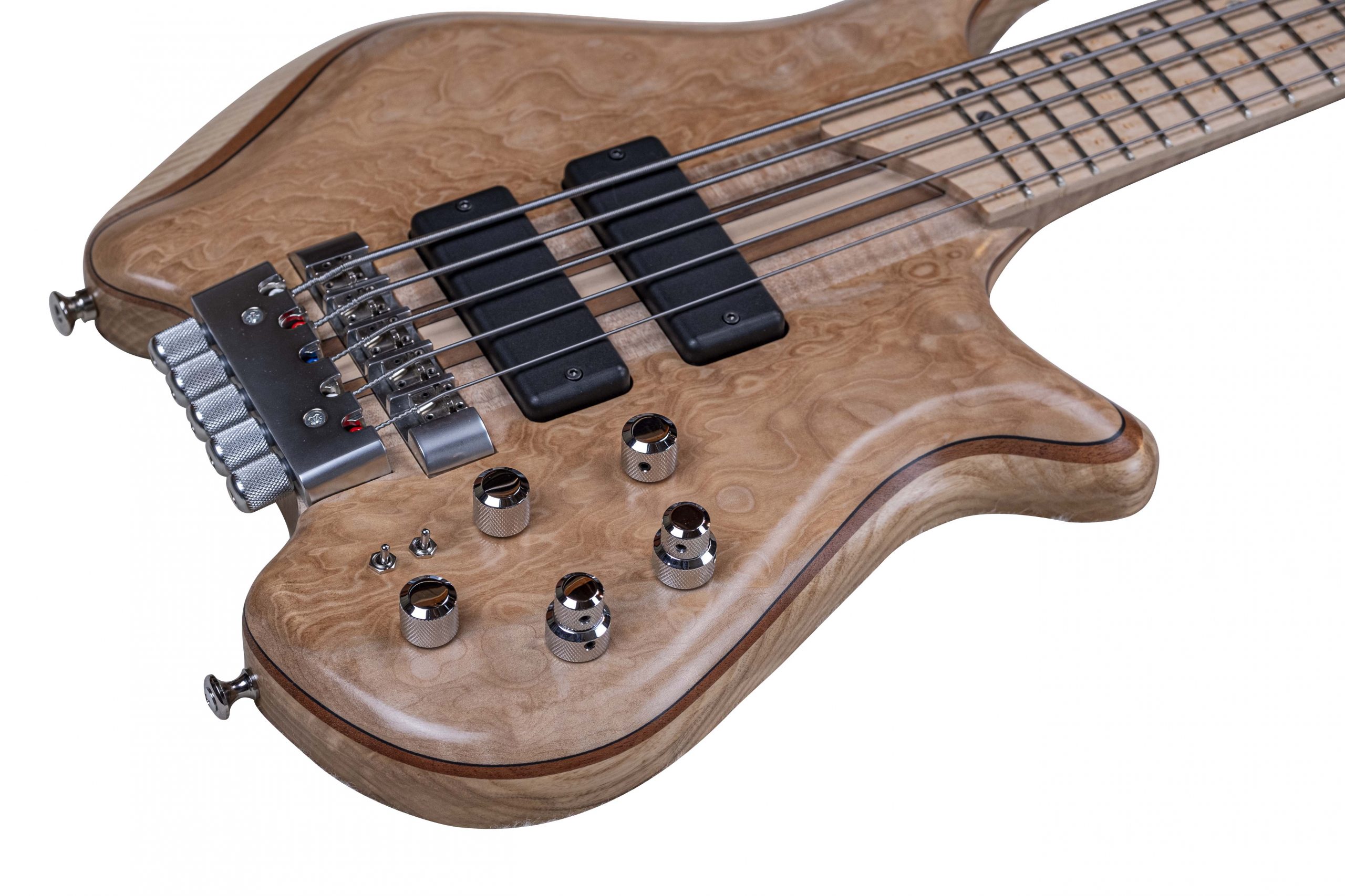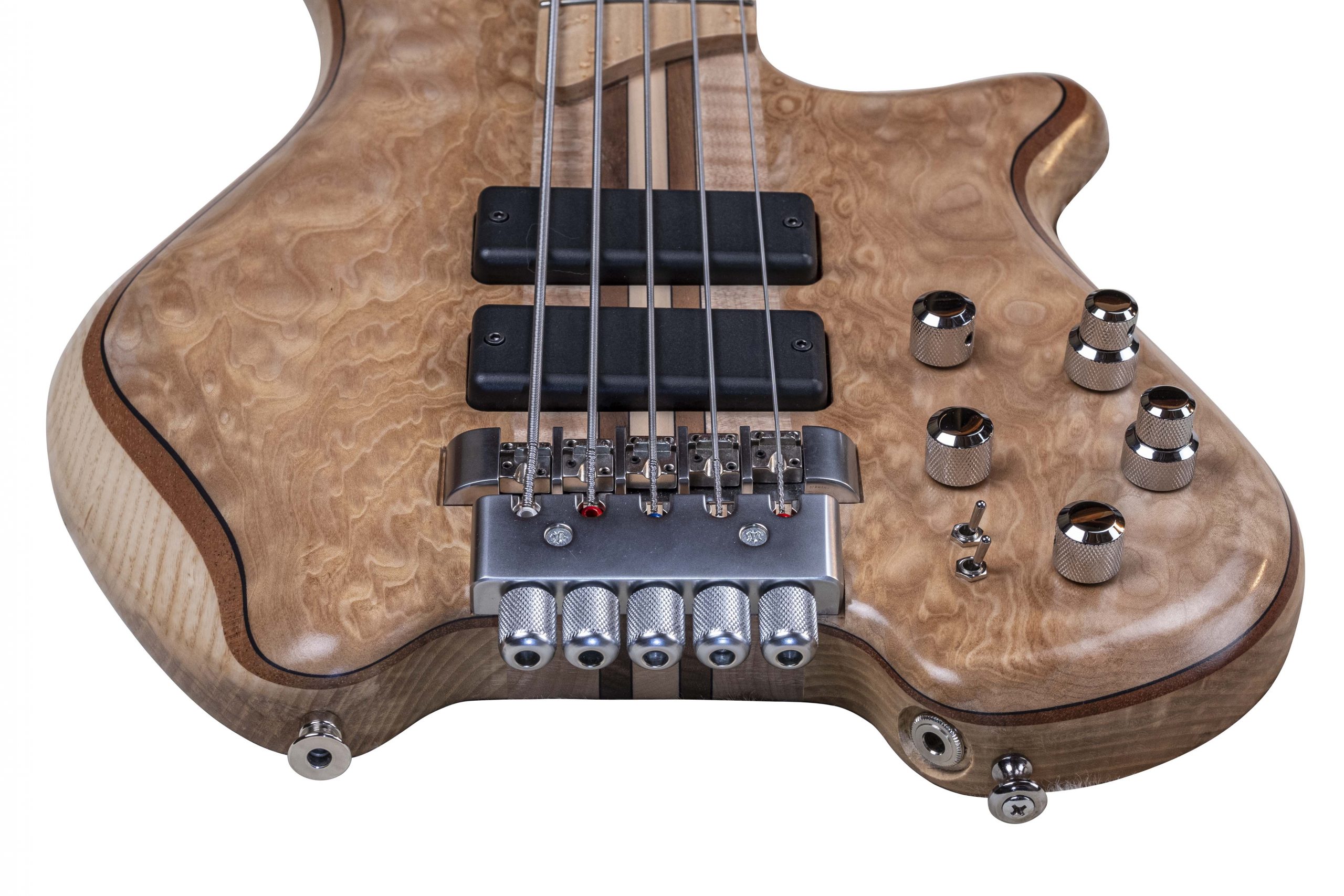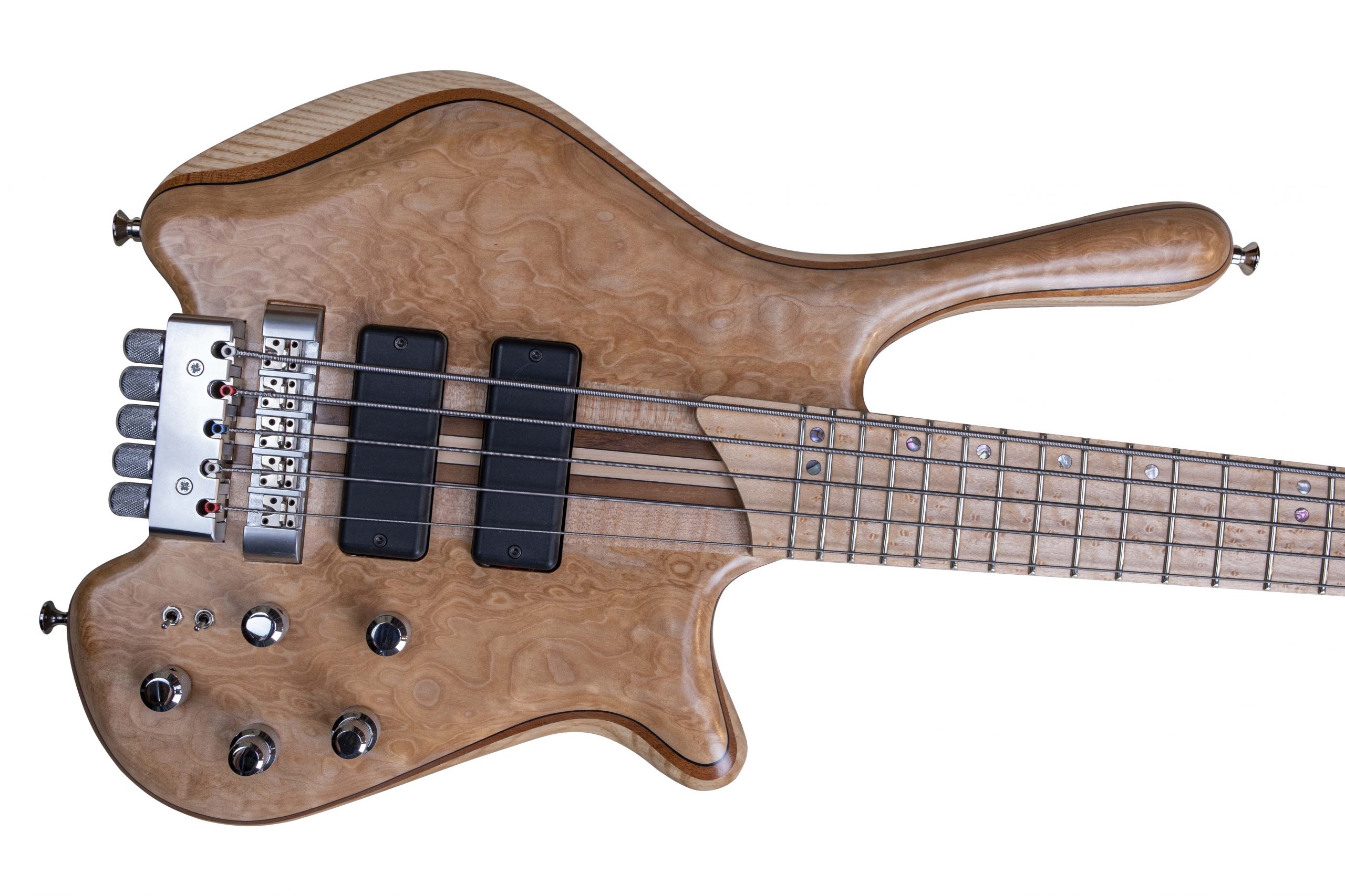 The focus of the Zentro design was comfort, balance, ergonomics and playability. The unique design offers unimpeded access to all frets. Exotic woods and active electronics are standard. Available as bolt-on or through-neck construction.