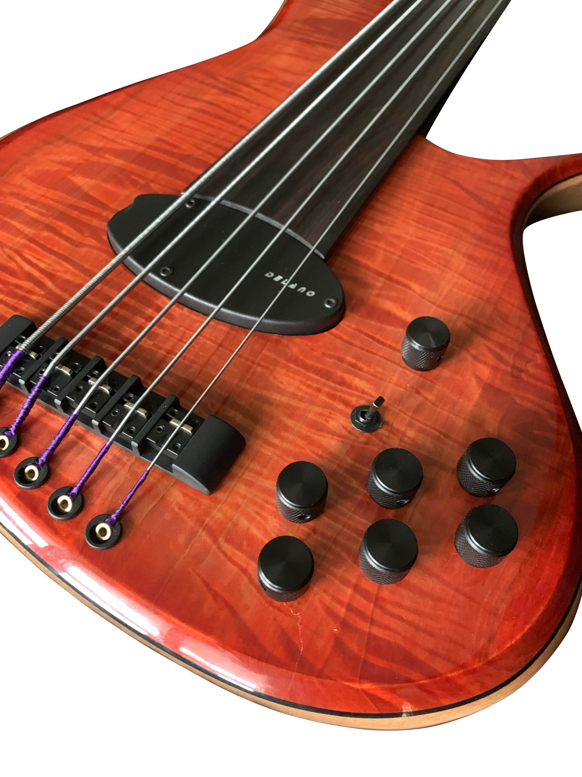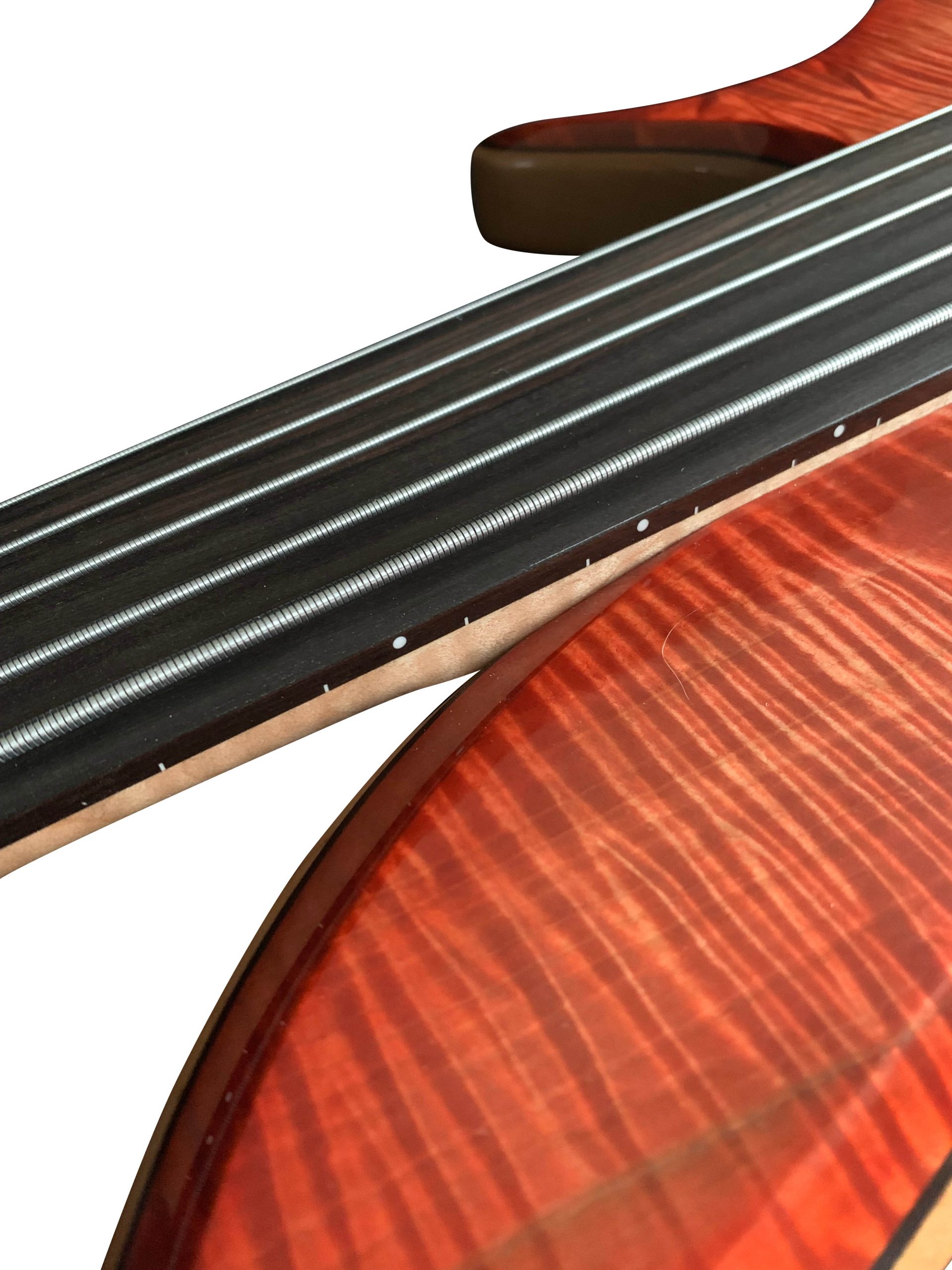 Based on discussions with numerous bass professionals, we created what we think to be one of the nicest flowing single cut designs available! Front and rear exotic woods with accent veneers emphasize